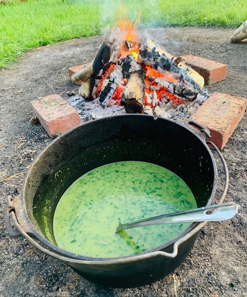 Hier sind alle naturbegeisterten Kinder oder die, die es noch werden möchten eingeladen. Wir werden eine schöne Zeit in der "Wildnis" verbringen. Die Kinder lernen Wissenswertes über diverse Heilpflanzen kennen. Wir werden sie richtig ernten und eine leckere Wildkräutersuppe daraus kochen. Jedes Kind mörsert sein eigenes Wildkräutersalz aus frischen Kräutern, welches in einem Tütchen beschriftet mit nach Hause genommen werden kann. Nach einer Trinkpause, mit den von mir zur Verfügung stehenden Getränken, je nach Jahreszeit wie die beliebte Gierschschorle, ein Zitronenmelissen-Wasser, Holunderblütensirup oder auch mal ein Kräutertee ist die Suppe fertig und das Feuer in der Feuerschale durchgeheizt. Nun wird die Suppe genüsslich verspeist und danach wickelt sich jedes Kind sein Kräuterteig um seinen Stock und lässt es in der Glut gar werden. Während dieser Zeit lauschen die Kinder zum Abschied einem Pflanzenmärchen.